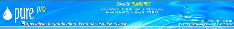 Boutique en ligne de traitement de l'eau et de l'air Purepro : purification d'eau par osmose inverse - osmoseur - adoucisseur d'eau - stérilisateur UV (ultraviolet) - distillateur - revitaliseur - filtre à eau - ioniseur (purificateur d'air)
